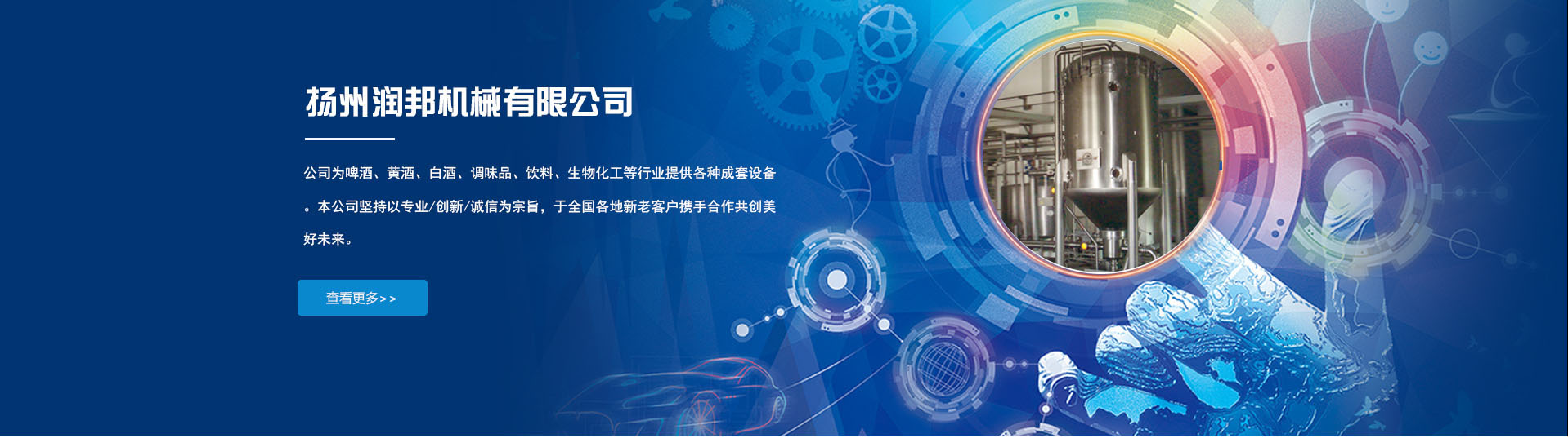 揚州潤邦機械有限公司是中國飲料工業協會,中國酒業協會,中國食品工業協會啤酒專業委員會會員單位。公司座落于風景秀麗的揚州北山工業園,距揚溧高速瘦西湖出口100米處。